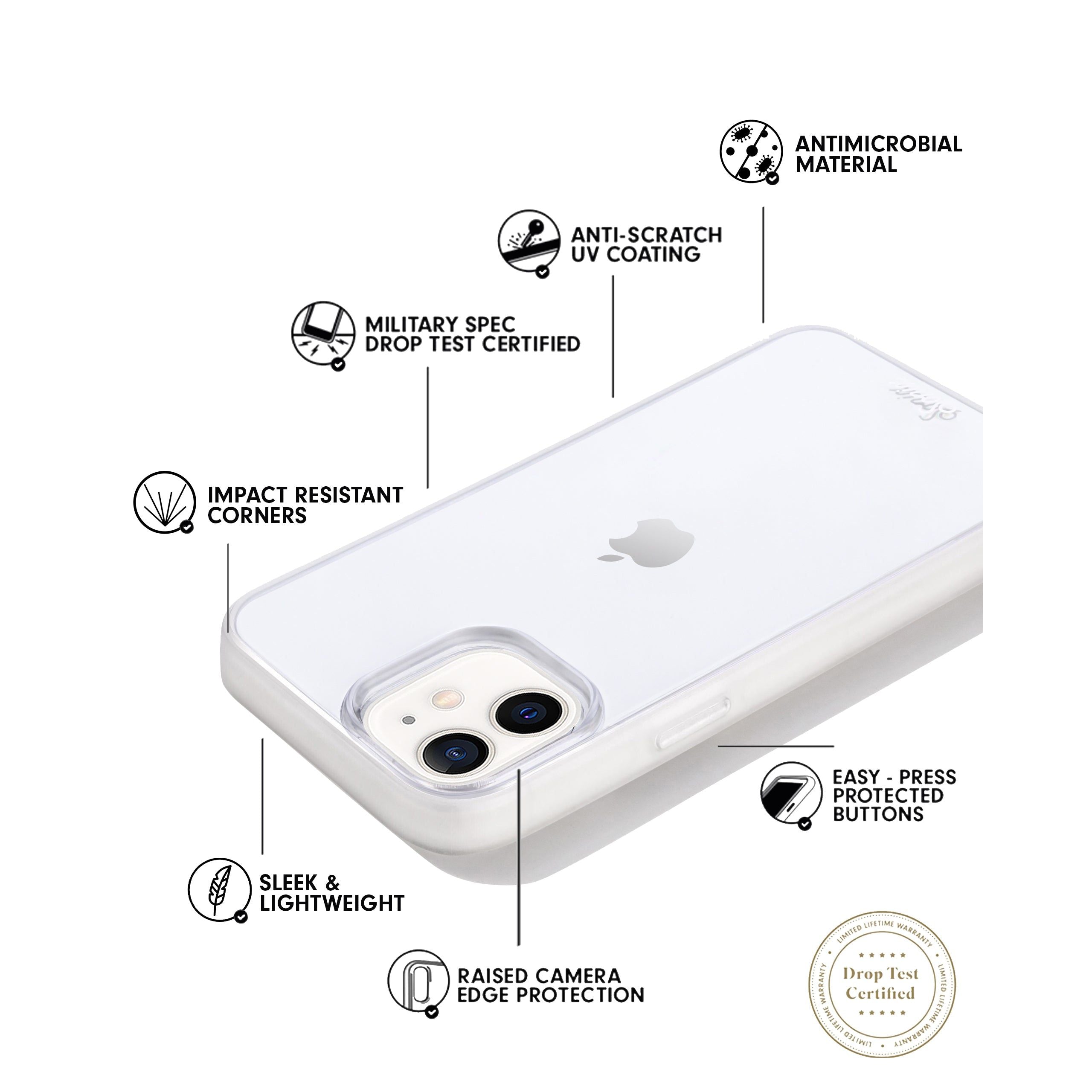 مصنوع للحماية من كل لحظات "أوه ، لا!" لحظات (حتى ارتفاع 10 أقدام من تلك اللحظات). صُممت لتدوم - تتميز حافظات Sonix iPhone بطبقة واقية مقاومة للخدش ، مع جوانب ماصة للصدمات مرتفعة لحماية 360 درجة على الشاشة والكاميرا. سهولة الوصول إلى جميع المنافذ بأزرار ضغط سهلة وعملية. تأتي غلافات هواتف Sonix بضمان محدود مدى الحياة من Sonix.