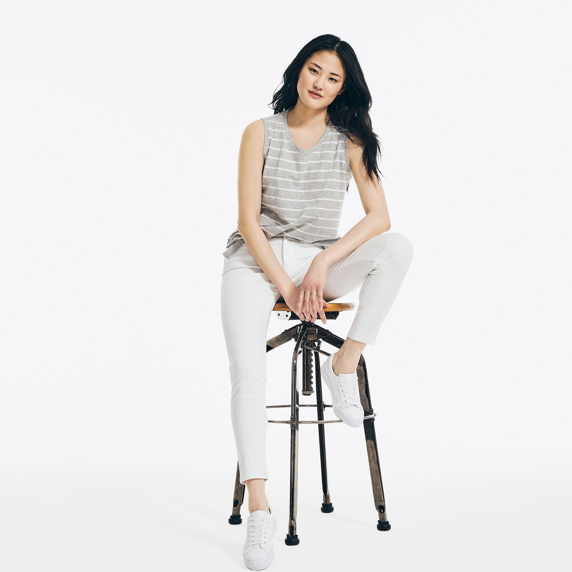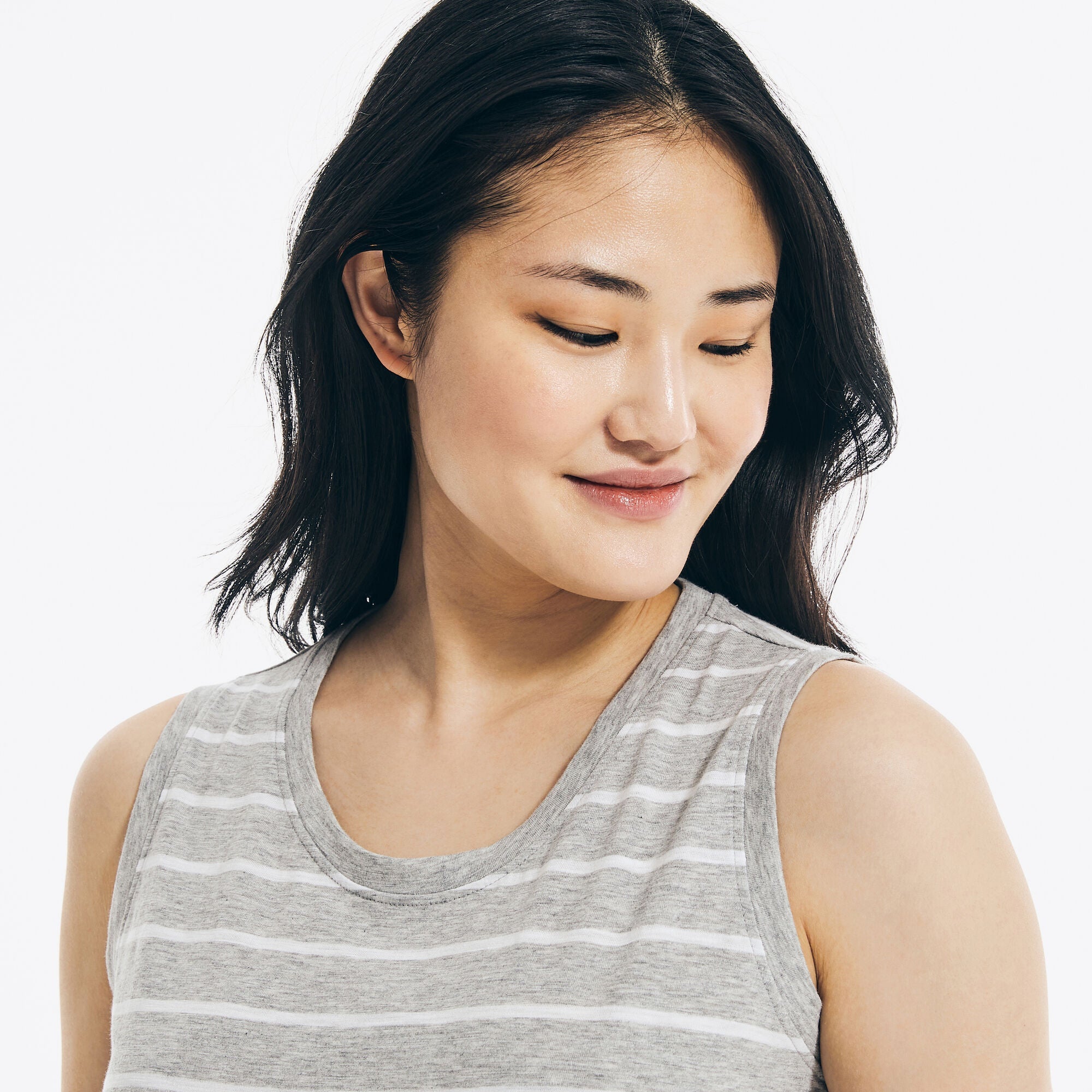 Hot days call for a wardrobe of breathable fabrics, like this sleeveless striped tee made from soft cotton jersey. Classically cut, it features a scoop neckline perfect for stacked necklaces and a side slit hem for easy layering.