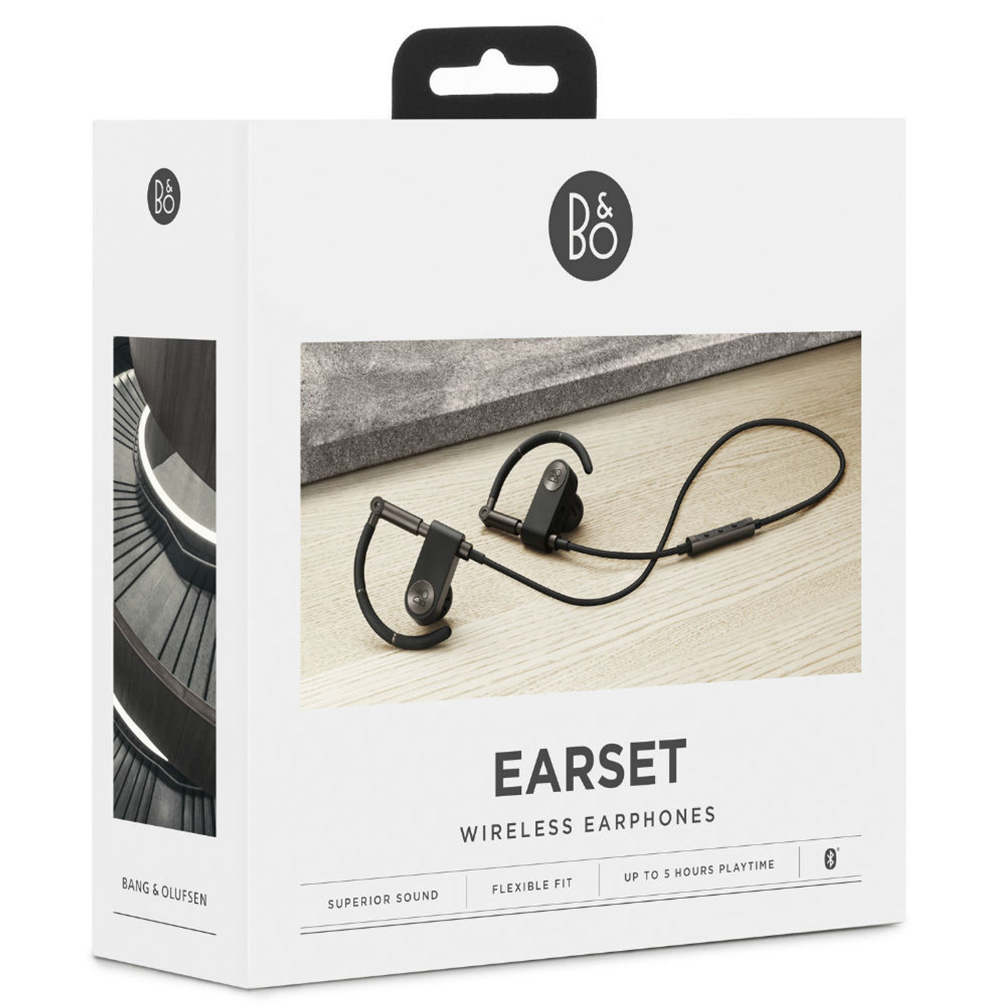 Beoplay Earset are premium wireless earbuds with adjustable ear hook wearing style.