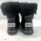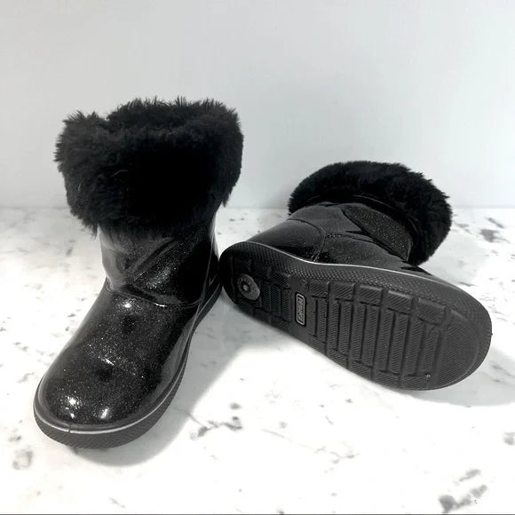 Premiji Black Shiny Ankle Boots Black Glitter Faux Fur Bumper Side Closure