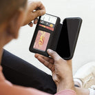 The exterior is made of premium pebbled genuine leather with a built-in horizontal stand feature and pockets to hold cards or cash. Get the Wallet Folio and go!