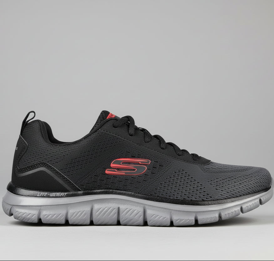 أضف راحة ومرونة إلى تمارينك الرياضية مع حذاء سكيتشرز تراك. يتميز هذا الحذاء برباط بجزء علوي شبكي ناعم ونعل داخلي مبطن بتقنية سكيتشرز ميموري فوم™.