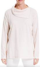 Opt for relaxed comfort with this relaxed top featuring an angled split neckline. Long sleeves keep you tightly covered, and slits on the sides allow you to move freely.