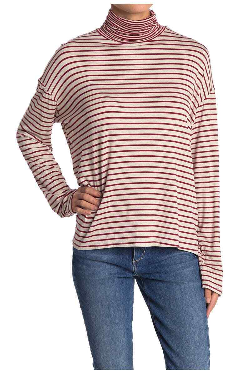 The lines of this low-shoulder shirt are designed a little thinner at the turtleneck for a touch of fun.