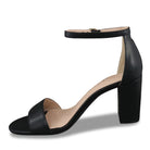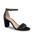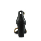 Multiple faces Adjustable ankle strap open toe Synthetic leather lining Cushioned footbed Synthetic sole 3" covered block heel