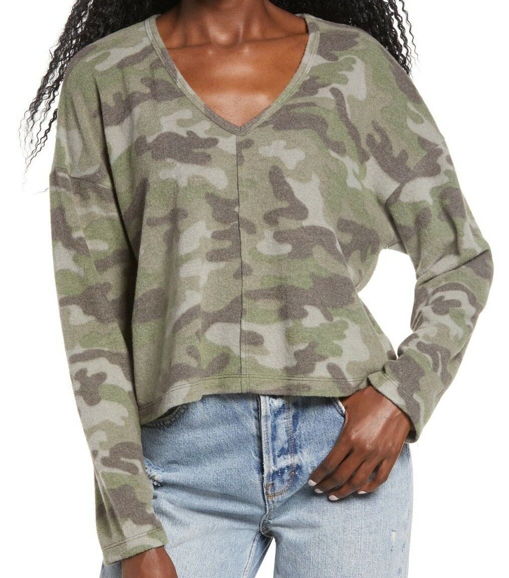 Classic camouflage elevates this V-neck blouse in a boxy silhouette that's perfect for weekends.