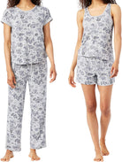 Lucky Brand Women's 4-Piece Pajama Set With Tee, Tank Top, Shorts And Pants Soft Knit Fabric