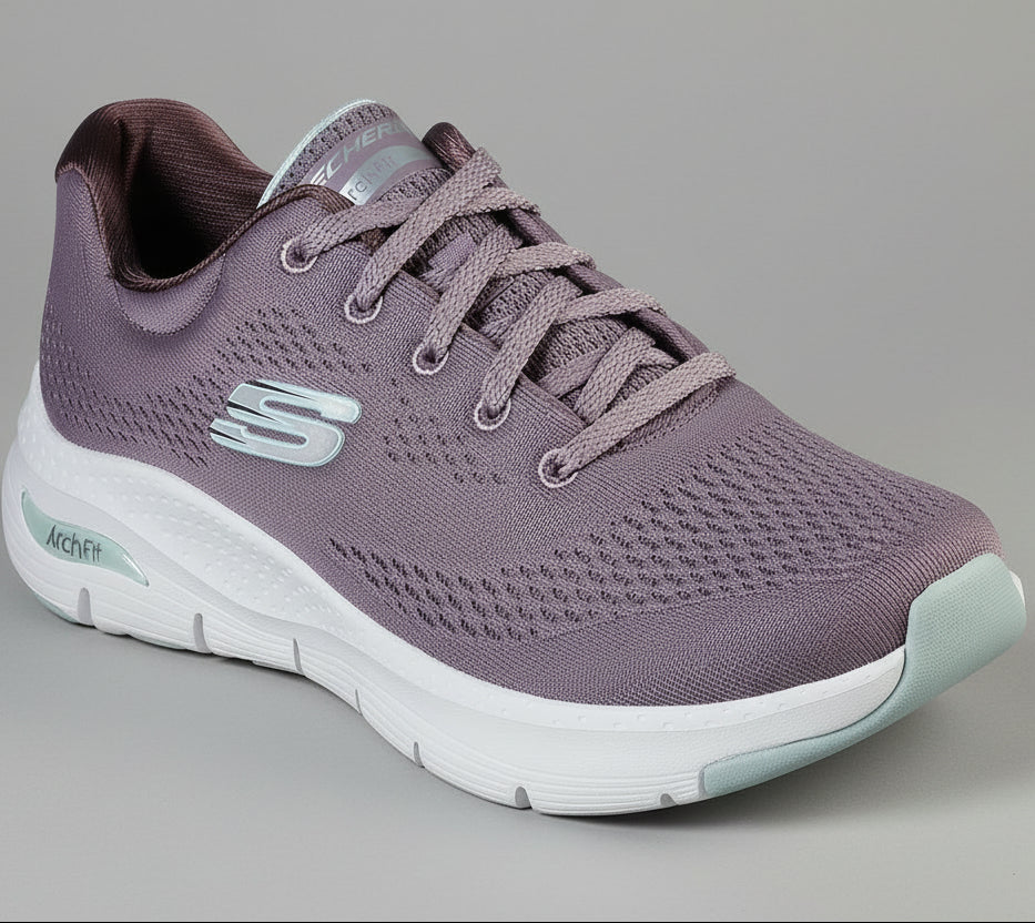 - شعارات Skechers® و Arch Fit® على الحذاء.