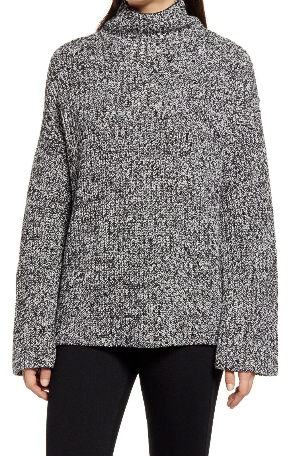 Caslon Elegant Round Neck Warm Knitted Pullover Ivory Black M