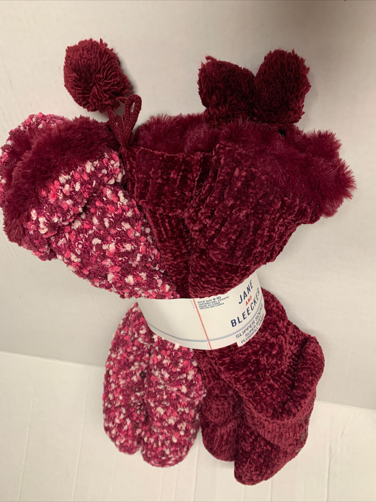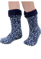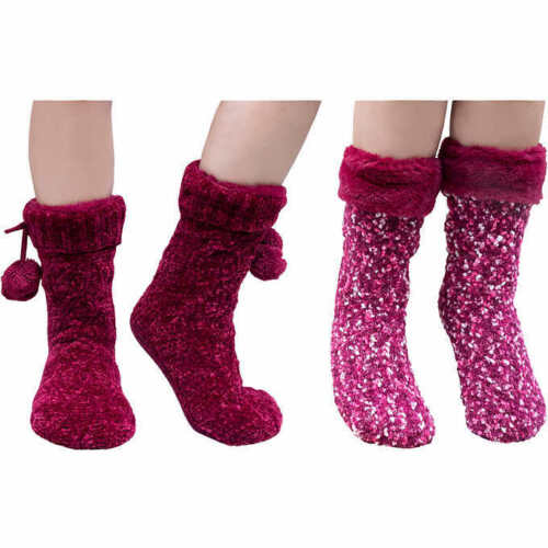 Two pairs of synthetic sherpa lined socks with gel grippers on the soles