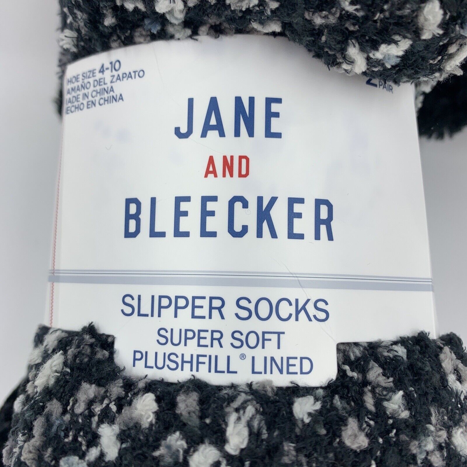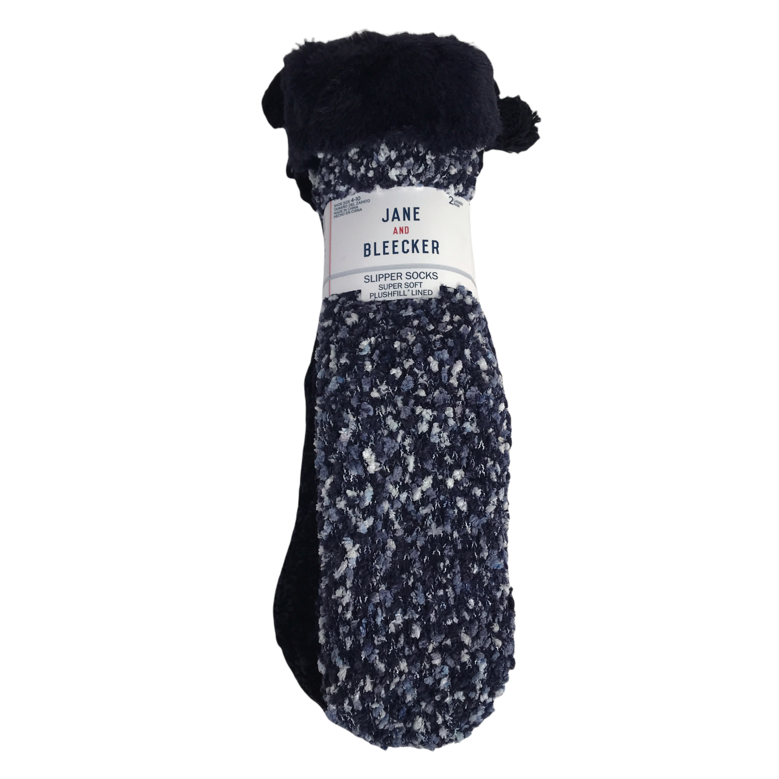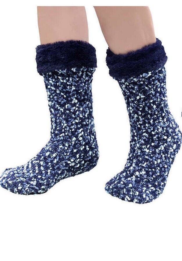 2 Pairs Jane & Bleecker Women's Plush Slipper Socks New Navy Blue 100% Acrylic, 100% Polyester