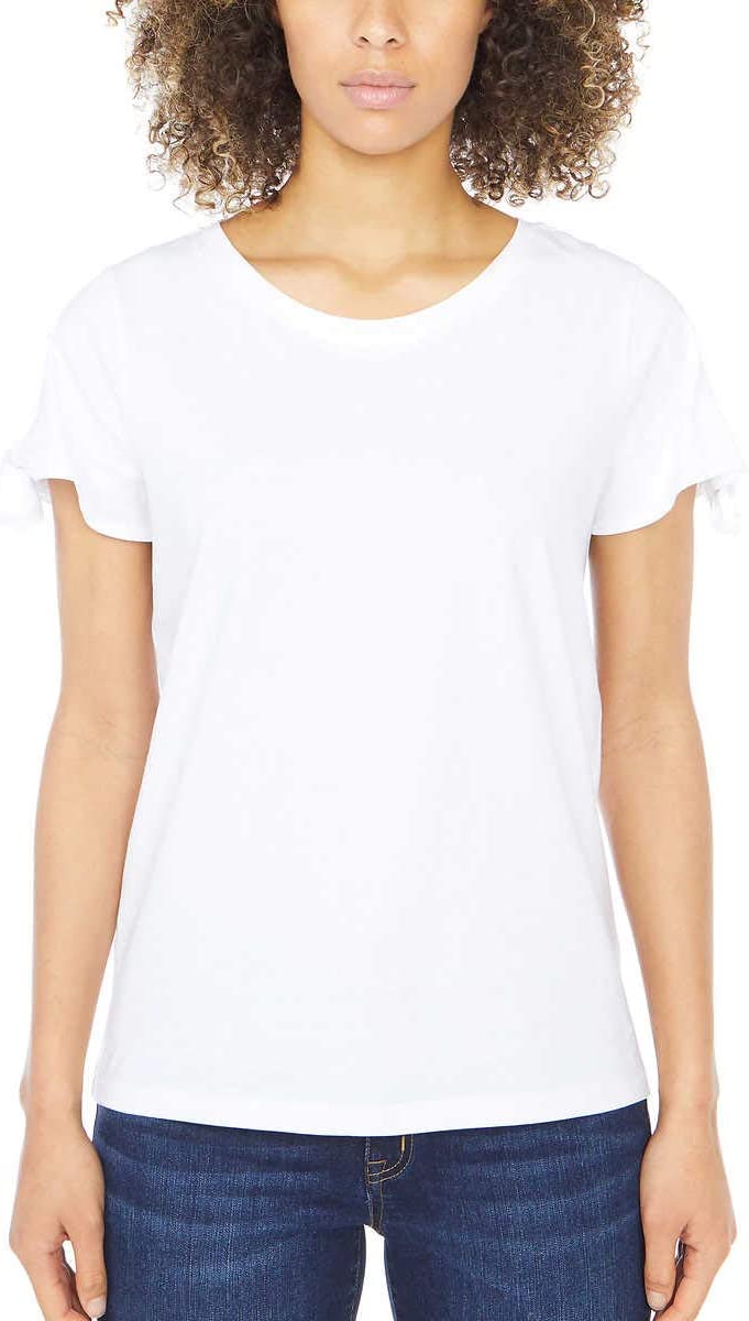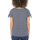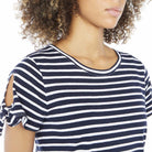 Nautica women's tie sleeve blouse with soft, breathable cotton, short sleeves, keyhole tie detail and crew neckline. navy colour. Key tie