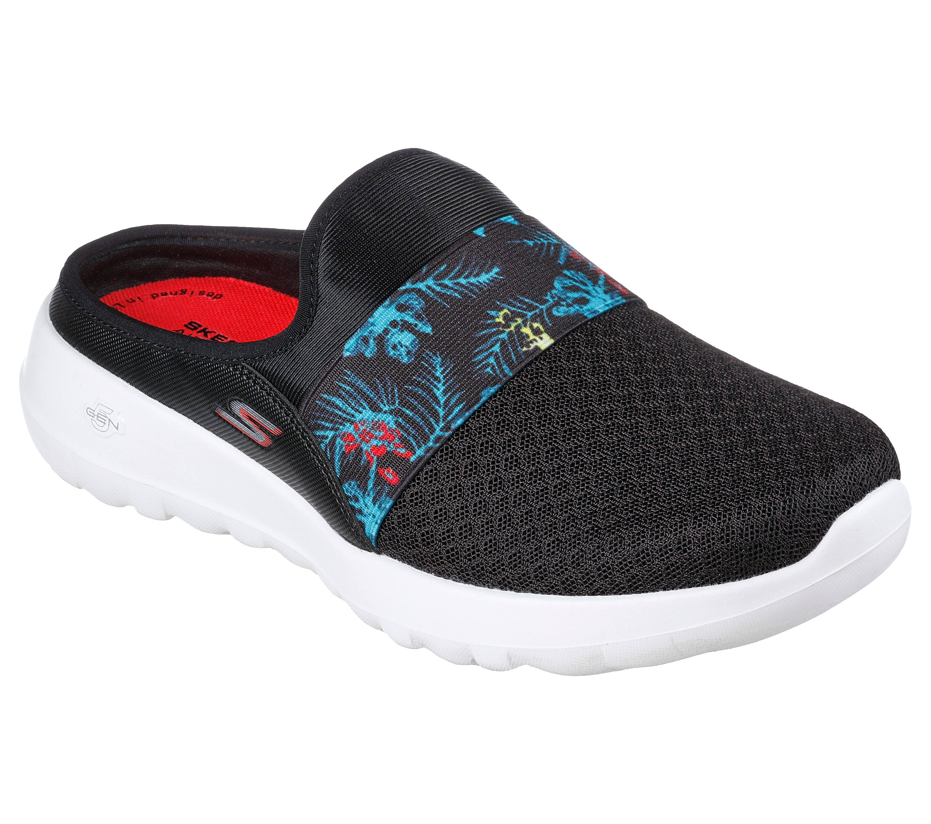 Slip into the Skechers GOwalk Joy Tropical Oasis slip-on shoe for new comfort you can feel with every step. The Air-Cooled Goga Mat™ insole and innovative 5GEN® cushioned midsole work together to keep you feeling your best.