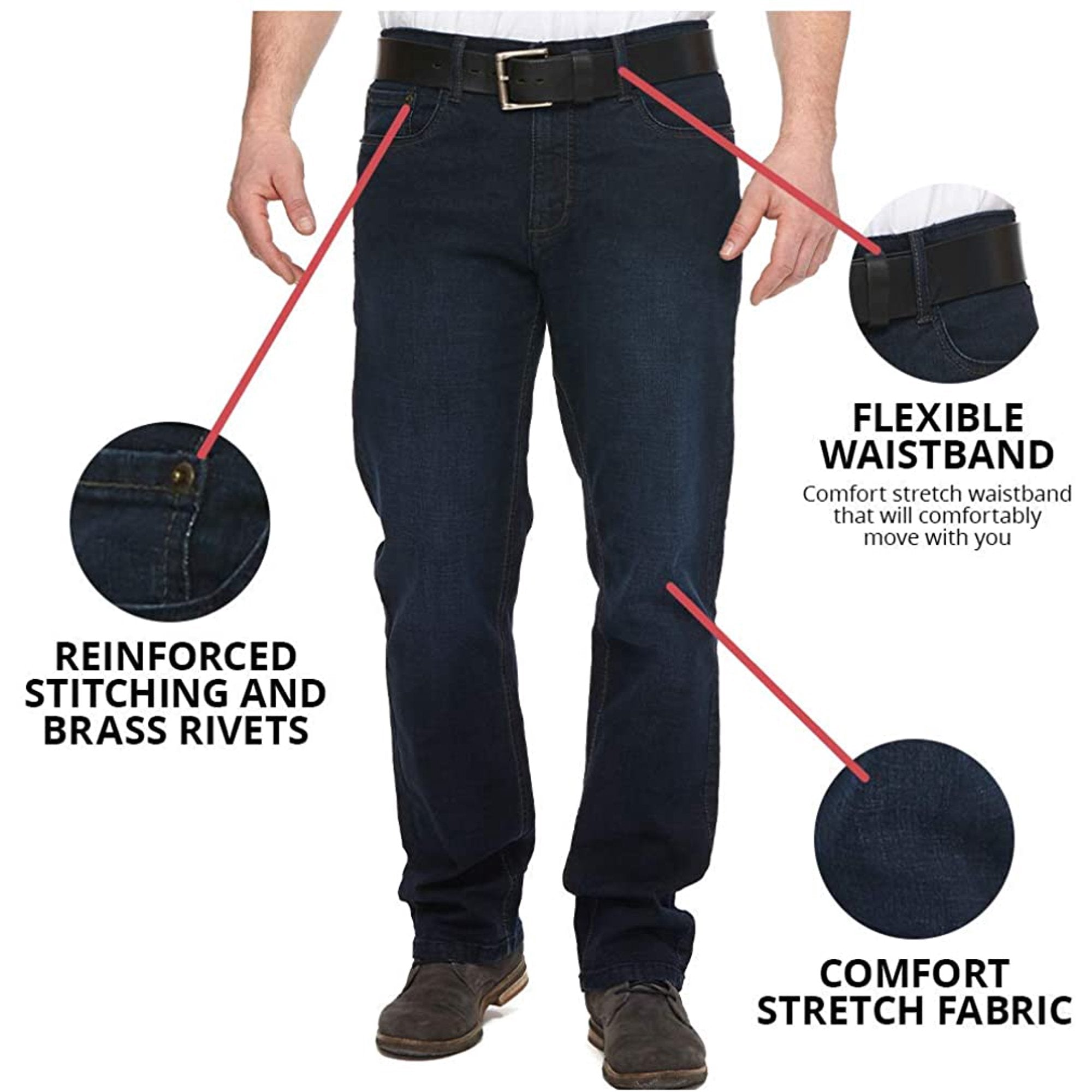 Absolute convenience. The most comfortable pair of jeans you'll ever own. And thanks to the stretchy fabric, you won't have to sacrifice shape or style to wear them. Guaranteed to become your favorite pair. Move freely. The stretchy cotton blend used in the jeans helps maximize freedom of movement. Whether you're working out with your kids or turning up the grill, enjoy the freedom of wearing sweats in the form of these high-quality men's jeans. perfect fit. Tired of trying to squeeze into skinny leggings? Urban Star Men's Relaxed Fit Jeans offer a relaxed fit at the waist and a straight leg all the way. These pants provide the perfect fit regardless of body type. High quality machine wash. Deep pockets, reinforced stitching to ensure belt loops and seams don't tear, and a fail-proof brass zipper that always runs smoothly. Machine washable. What occasion? Tough enough for work or play, these stretch jeans feature a timeless five-pocket design that makes them suitable for any occasion. Urban Star jeans have always been known for their style and comfort...try them and you'll see why. Designed with the perfect fit in mind, these relaxed fit jeans are crafted from a durable stretch twill denim fabrication that provides ultimate comfort and freedom of movement. Guaranteed to become your go-to pair.