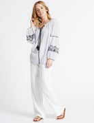 كاسلون بنطلون من الكتان مع ربطة عنق بحزام وخصر عريض